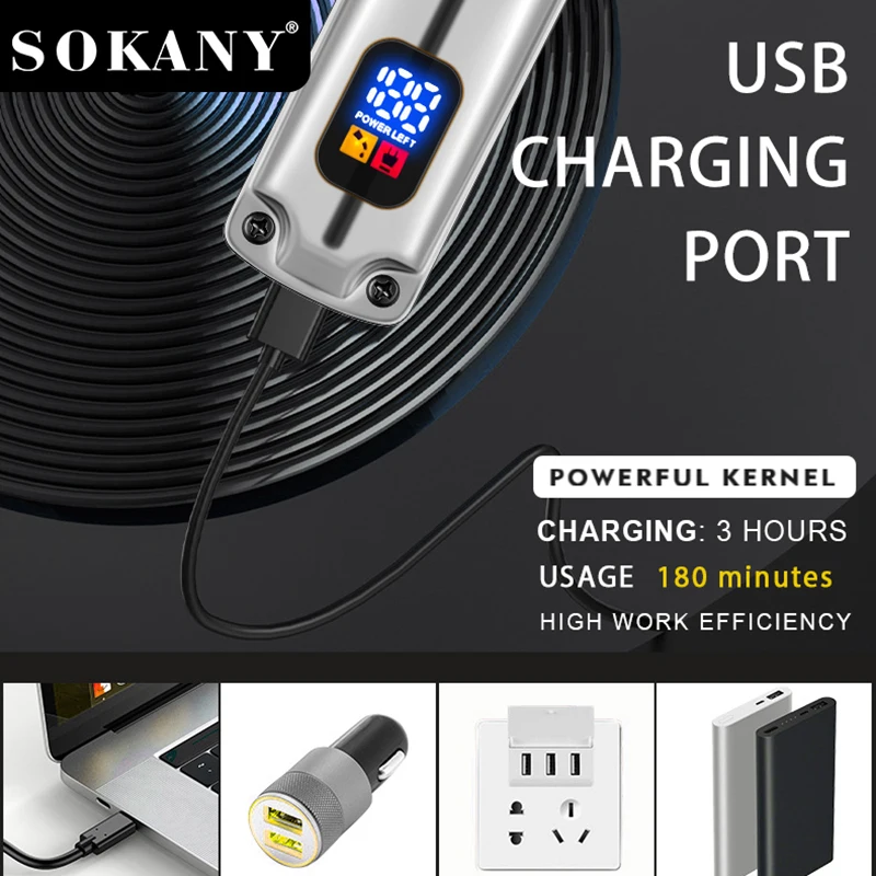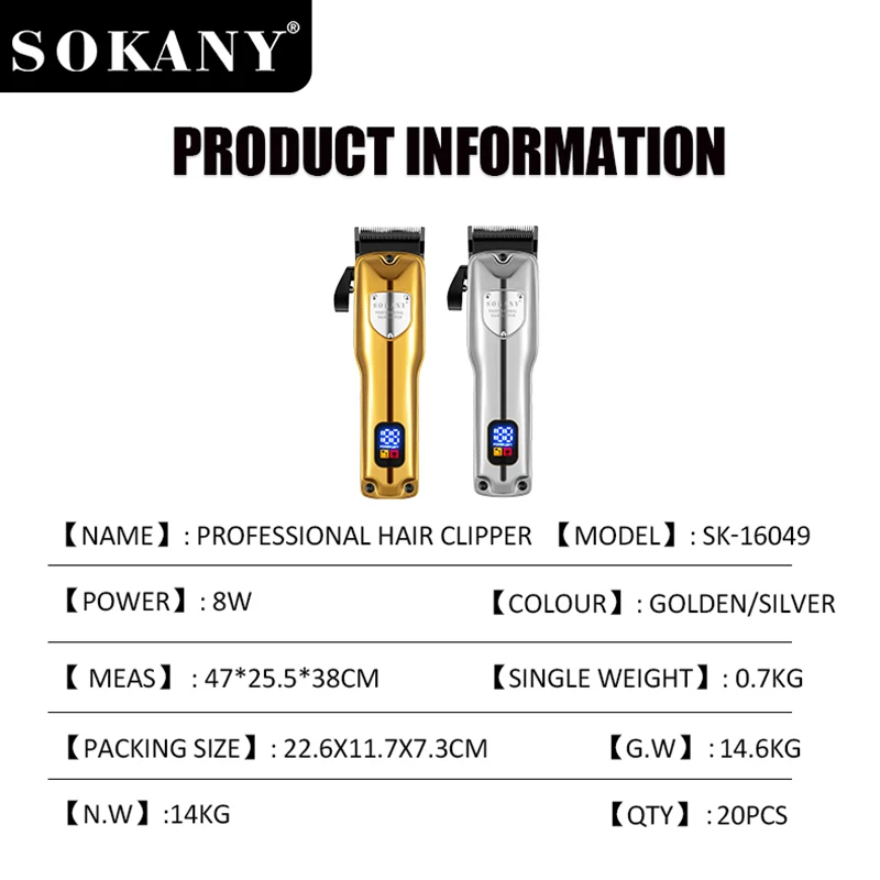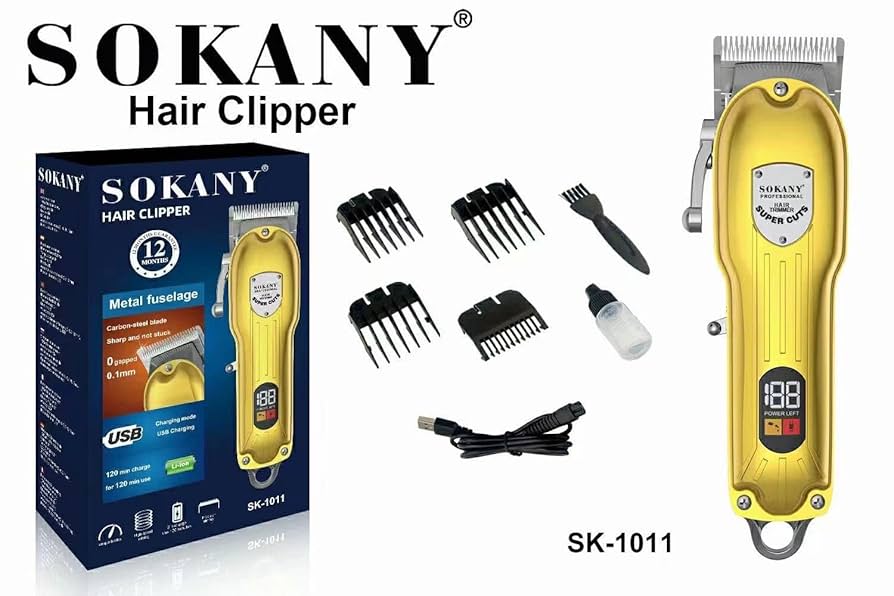Sokany Electric Hair Clipper Sokany Electric Hair Clipper is your perfect partner for a smooth and easy clipping experience. You can consistently achieve professional-level results with its lightweight design, powerful motor, and advanced features. Not to mention that the battery chargesquickly thanks to a 1500mAh power source, so you will be ready for any haircutting task in no time. In addition to the combs included with the clipper, this hair clipper also consists of a cleaning brush and a long hair comb to help keep your hair neat and tangle-free while clipping.